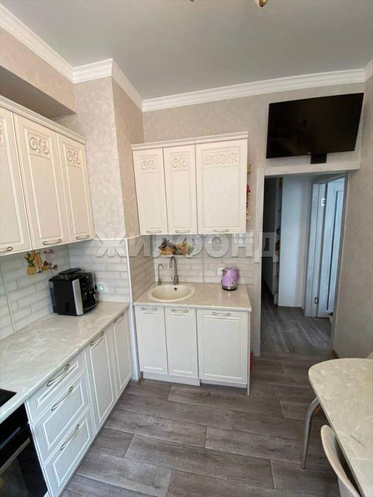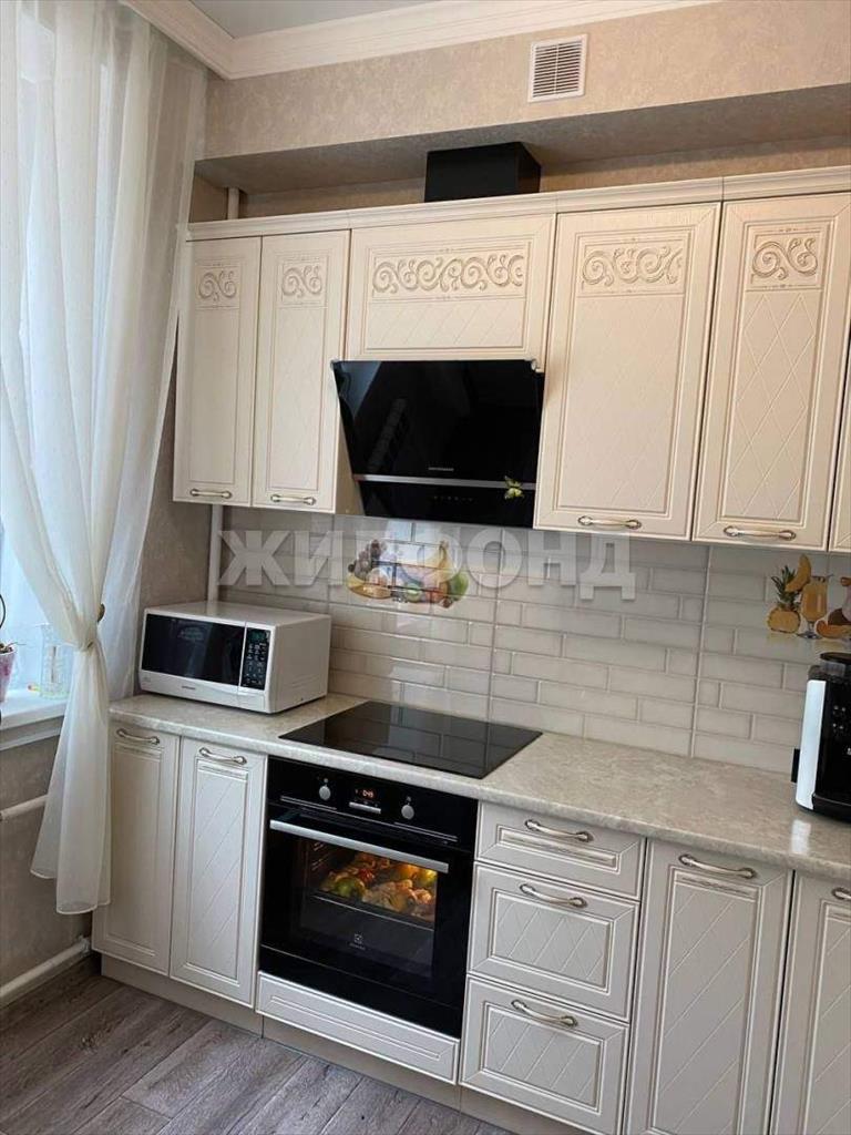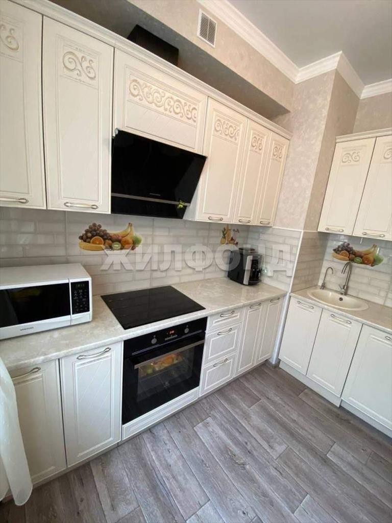 В квартире остается кухонный гарнитур со встроенной техникой, диван, кровать, кондиционер.